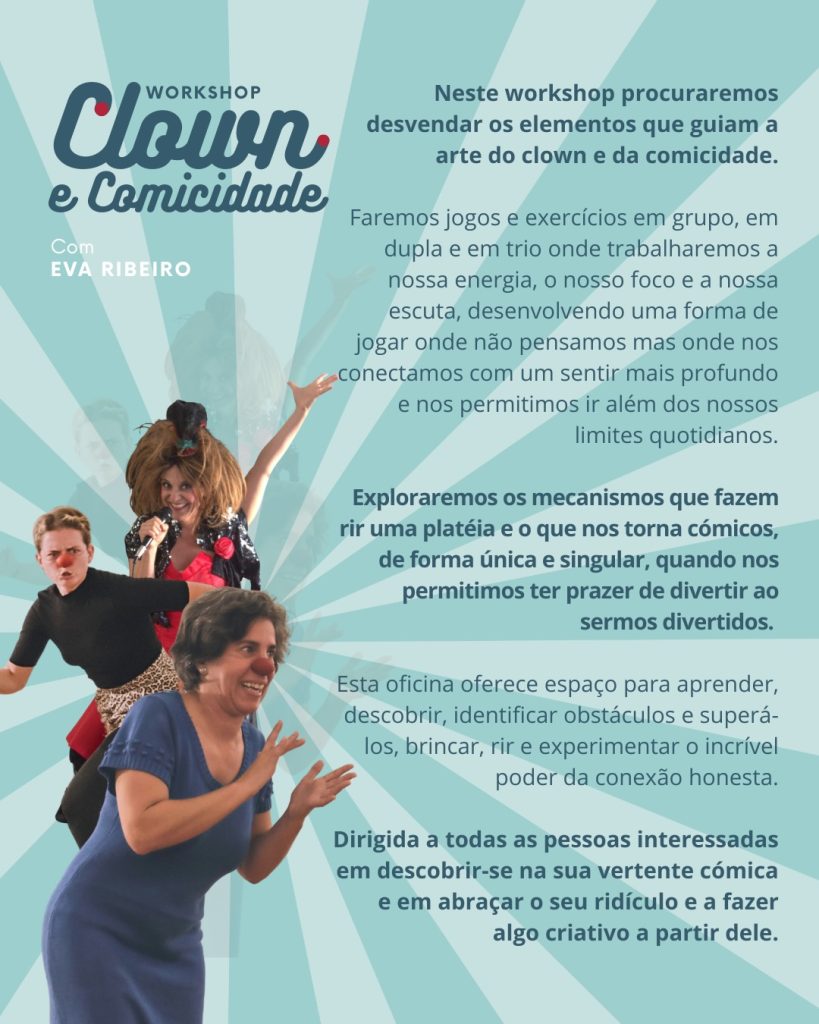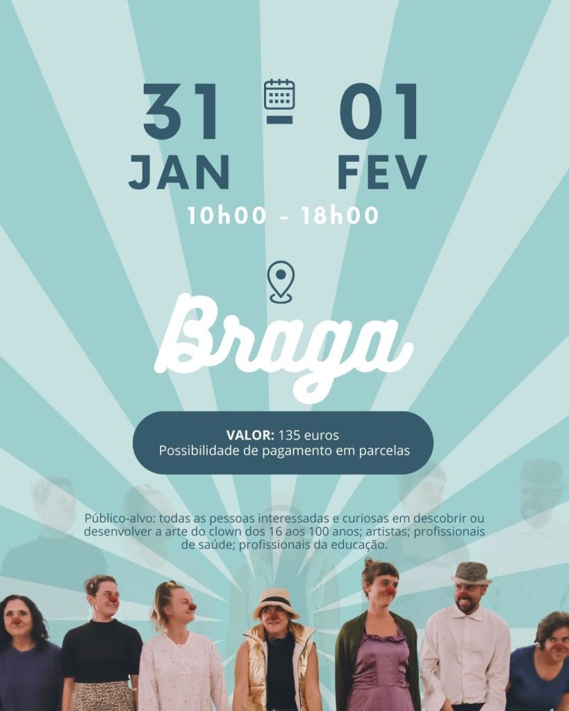 Workshop Clown – BRAGA Post author:Eva Ribeiro Post published:Novembro 28, 2025 Post category:Noticias Post comments:0 Comments You Might Also Like Residência “DesConcerto” Casulo Teatro Abril 15, 2026 Workshop de Bufão com Doloreze Leonard (CA) Agosto 8, 2025 Workshop Clown em Vila Nova da Barquinha Setembro 16, 2025 Deixe um comentário Cancelar respostaCommentEnter your name or username to comment Enter your email address to comment Enter your website URL (optional) Guardar o meu nome, email e site neste navegador para a próxima vez que eu comentar.