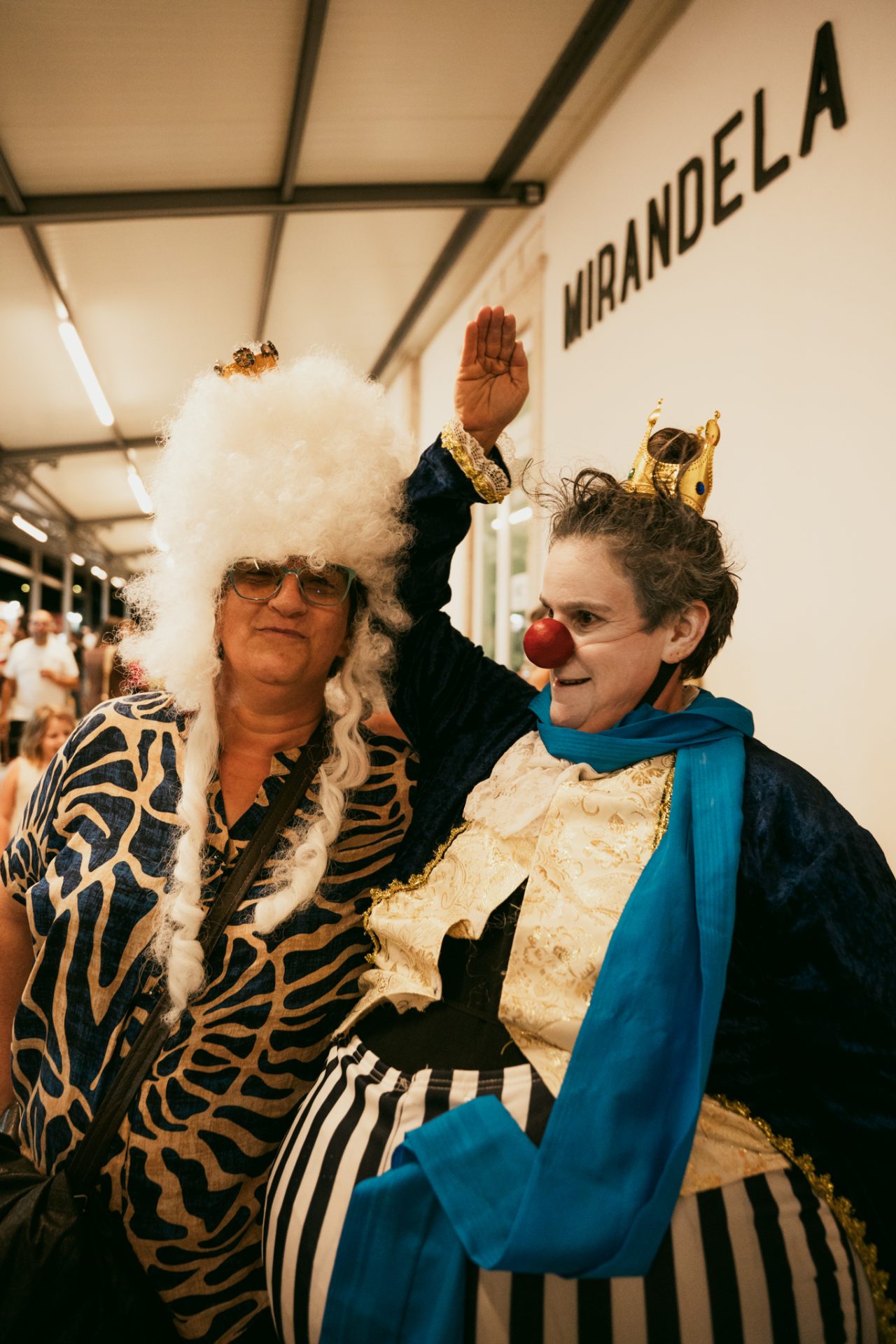 Nesta deambulação clownesca, o rei e a rainha trazem uma atmosfera mágica através da música e do humor visual.