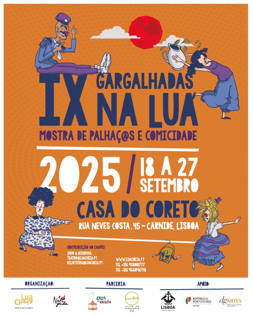 Carnide recebe Gargalhadas na Lua - Mostra de Humor e Comicidade, organizado pela Lua Cheia teatro para todos e A Nariguda em parceria com a Junta de Freguesia de Carnide e a Casa do Coreto com Apoio da Camara Municipal de Lisboa e a DgArtes/República Portuguesa.